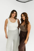 The Knit Pants Lite bring comfort and style together in bamboo knit form. Naturally breathable and hypoallergenic, these lightweight pants are perfect for lounging or styling up with boots and a blazer. Featuring a relaxed straight leg and elastic waistband, they move with you while the bamboo fibres regulate body temperature all year round. Available in Chocolate and Grey, they pair seamlessly with the Knit Cardi Lite or our Bodysuits for a complete bamboo set.